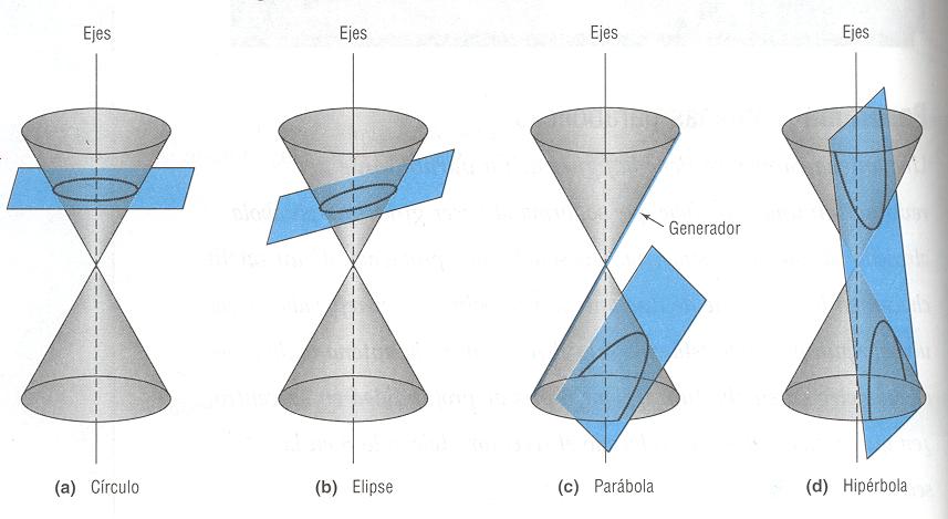 Las elipses son las curvas que se obtiene cortando una superficie cónica con un plano que no es paralelo a ninguna de sus generatrices.
